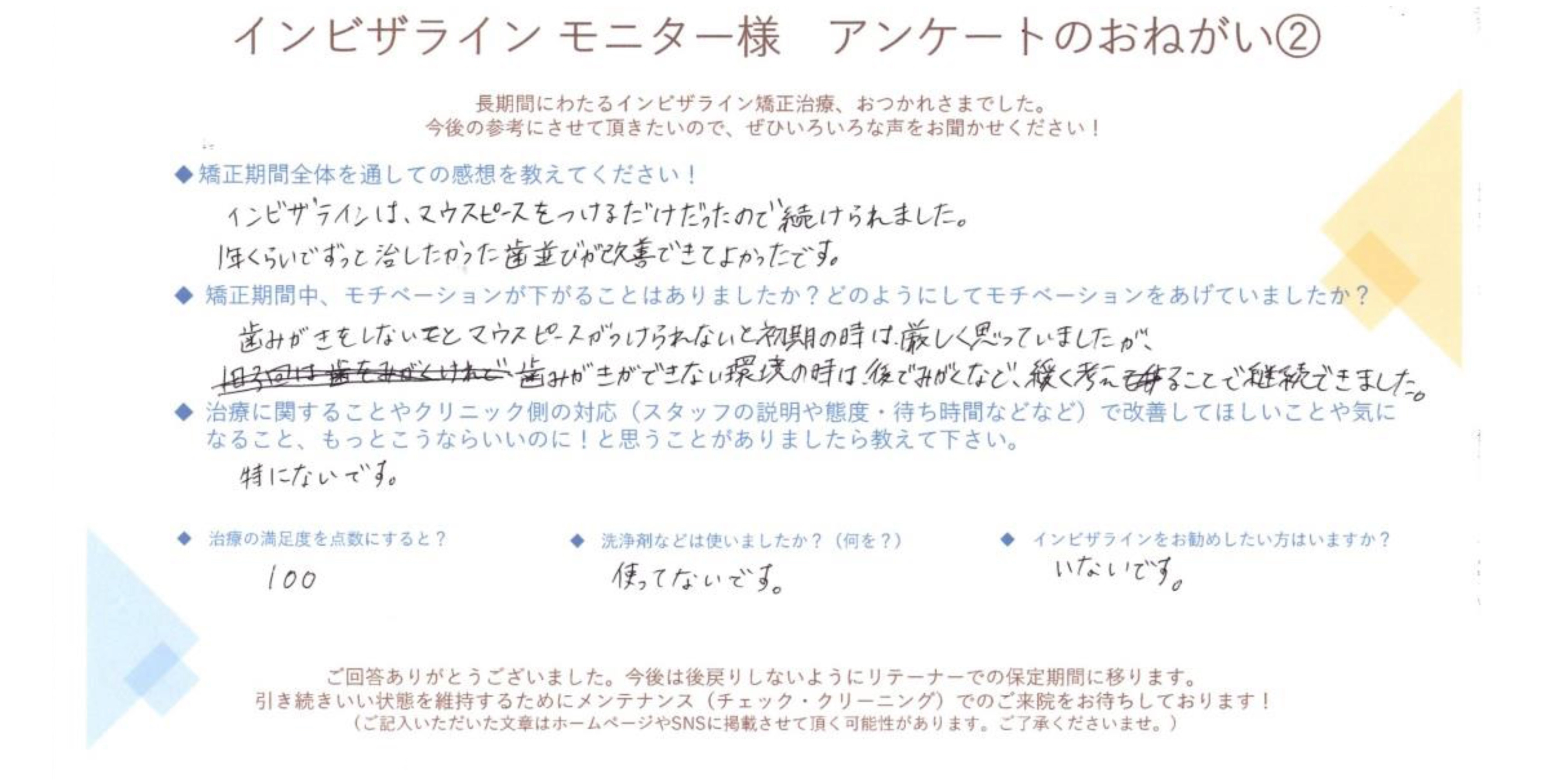 マウスピースを装着時間は1日20時間以上を目安にしてください。